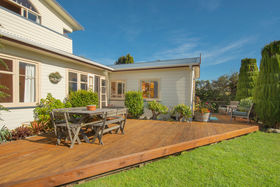 Wonderful three bedroom, two-storey character home with separate sleepout in Spencer Avenue, Maketu. Upstairs master bedroom with ensuite, robe and deck to enjoy the panoramic sea views. Walk to the school, shops and beach. Large flat section, fully fenced for kids and pets. Ideal family home with room for expansion. Private rear section with BBQ area and real wood-fired BBQ. This is a stunning property with established trees and vegetable gardens and is a "must see". Call to view now.